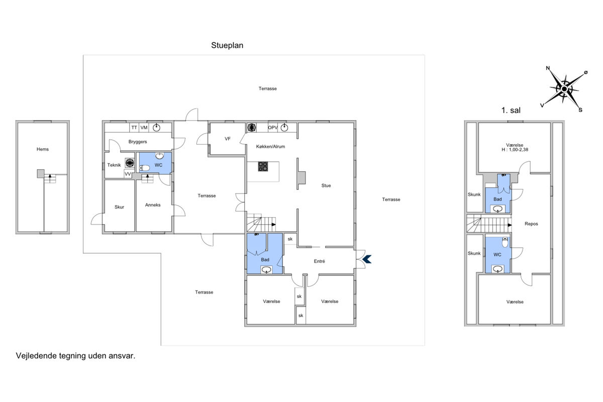 Das Haus verfügt über vier große, schöne Schlafzimmer und einen Anbau mit einem ausgebauten Dachboden für zwei Personen, ein großes, offenes Wohnzimmer mit fantastischem Ausblick und liegt nur etwa 45 m vom Wasser entfernt.
