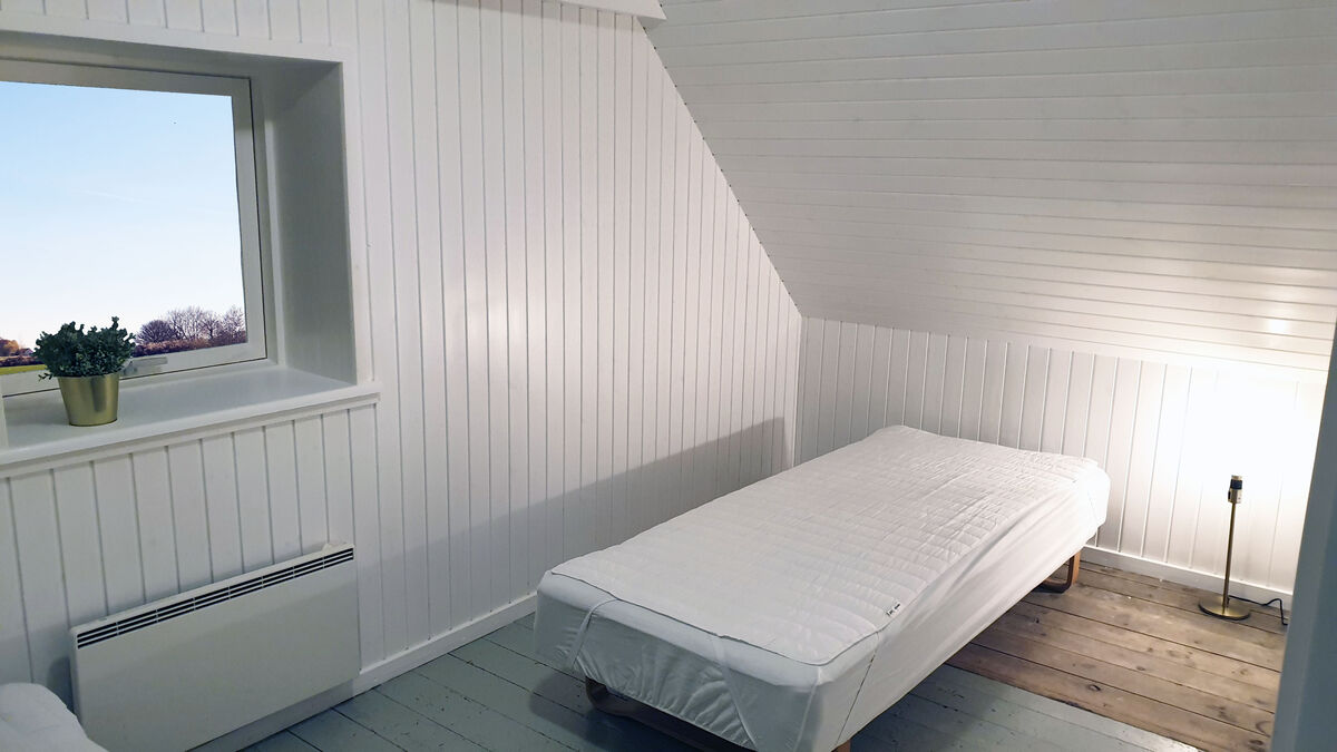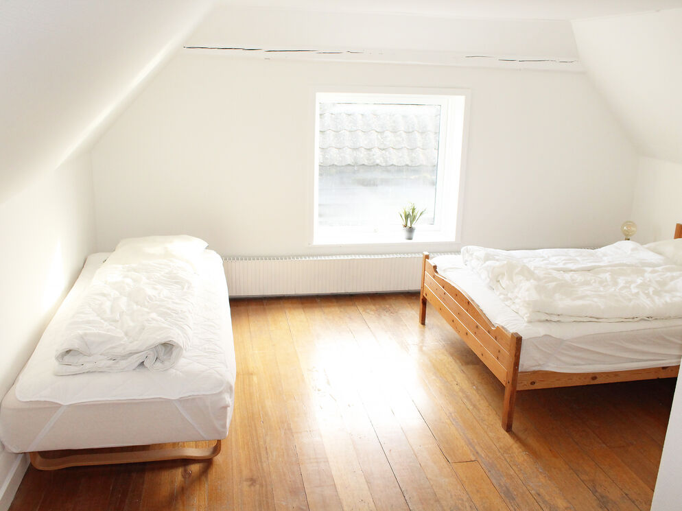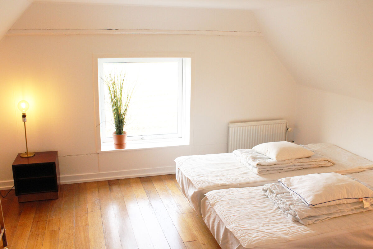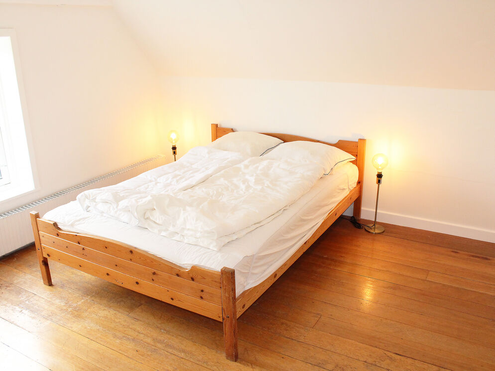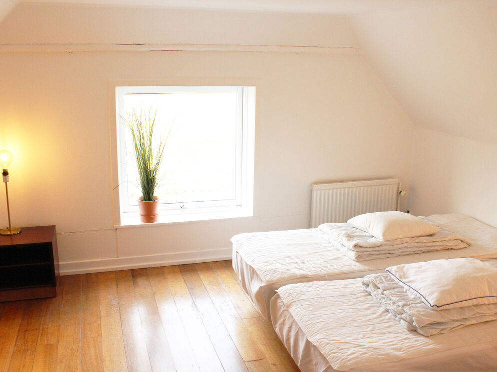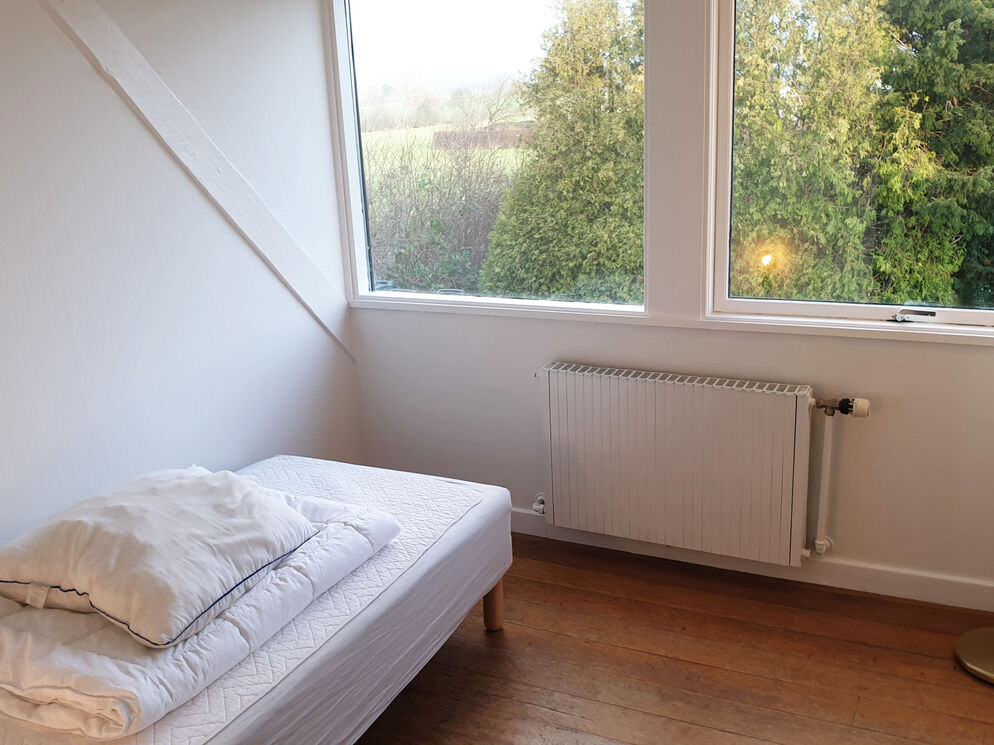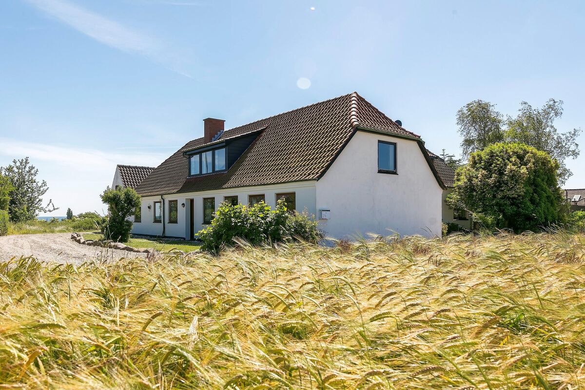 Das Erdgeschoss beherbergt darüber hinaus auch den großen Küchen- und Essbereich, in dem Sie im Kreise Ihrer Lieben die Mahlzeiten zubereiten, gemeinsam essen und vergnügliche Brettspiele an den großen Esstischen spielen können. Vier Badezimmer mit Fliesenböden und drei Schlafräume sind ebenfalls im Erdgeschoss platziert. Vom Wohnraum führt Sie eine Treppe in das obere Stockwerk, das mit weiteren vier Schlafräumen und einem langen Flur mit Blick hinunter auf den Kaminbereich besticht. Vom Küchen- und Essbereich führt eine weitere Treppe in das Obergeschoss. In diesem Bereich des ersten Stockes treffen Sie auf zwei Schlafräume, die Sie mit einem herrlichen Ausblick über die Landschaft und das Meer in der Ferne verwöhnen. Das von Feldern umgebene Ferienhaus liegt in ruhiger, idyllischer Umgebung, nur 500 Meter von einem schönen Strand entfernt.