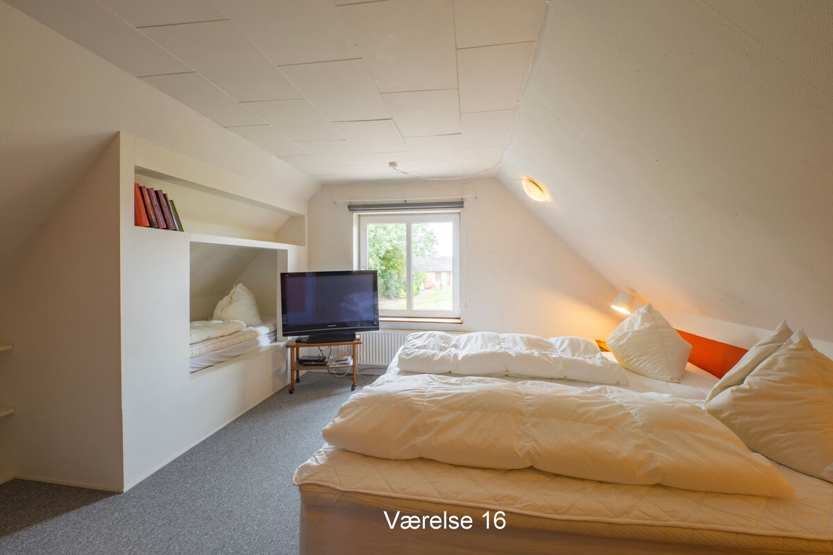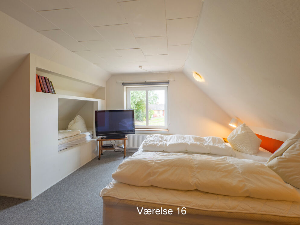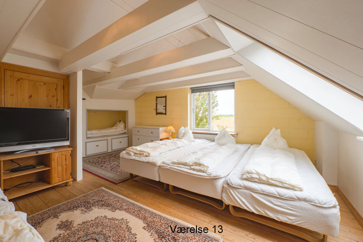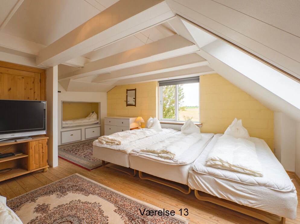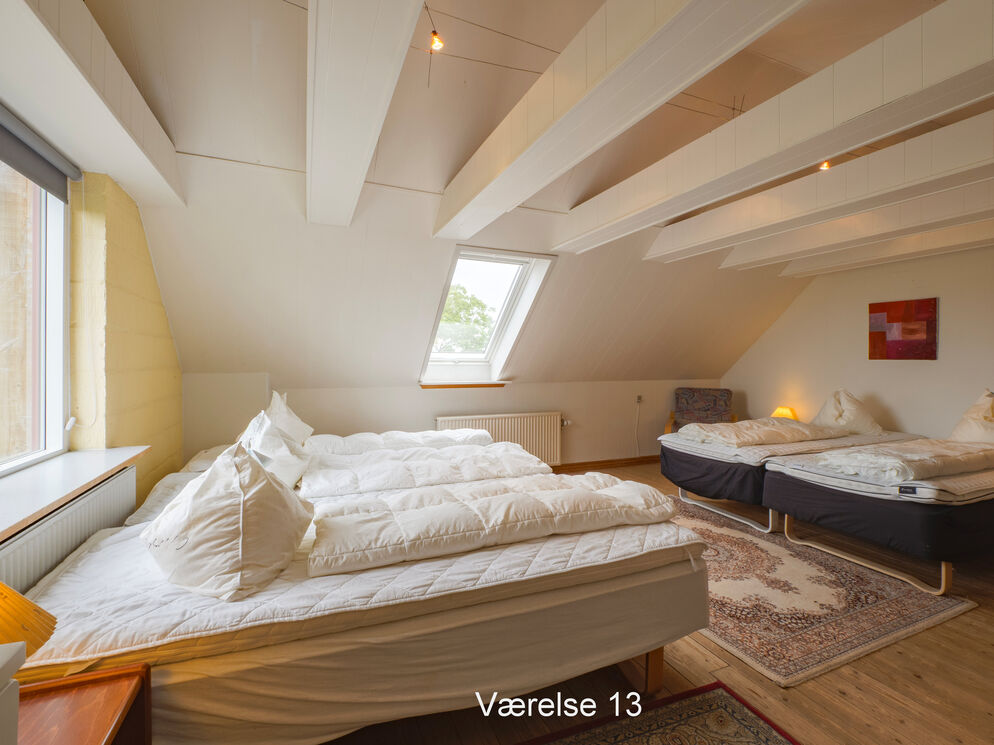 Großes, geräumiges Ferienhaus mit Aussicht auf den Limfjord und die attraktive, ländliche Umgebung. Bereits nach einem kurzen Spaziergang befinden Sie sich inmitten schöner, sattgrüner Natur. Das Urlaubsdomizil beherbergt bis zu 41 Personen. Es ist funktional eingerichtet und bietet ausreichend Bewegungsfreiheit für diverse unterschiedliche Aktivitäten im Innen- und Außenbereich. Die Küche empfängt Sie ebenfalls mit einer praktischen Einrichtung. Geschirr, Küchenutensilien, Kühlschränke, ein Geschirrspüler und ähnliche Dinge sind vorhanden. Zusätzlich zum Wohnraum und zum Esszimmer, steht Ihnen in diesem Objekt auch ein Aktivitätsraum mit einem Tischkicker und einer Play-Station samt diversen Spielen zur Verfügung. Unter freiem Himmel, nahe dem Hauptgebäude, locken vielfältige Aktivitätsangebote, beispielsweise in Form einer einer Sauna. Das funktional eingerichtete Haus ist an die Bedürfnisse einer großen Gruppe angepasst. Dabei wurden sowohl die Bedürfnisse Erwachsener als auch die der Kinder berücksichtigt. Die Umgebung lädt zu schönen Spaziergängen ein. Dieses gepflegte Anwesen eignet sich sehr schön für große Familien oder Gruppen, die einen aktiven Urlaub verbringen möchten. Selbstverständlich kommt jedoch auch die Entspannung nicht zu kurz.
