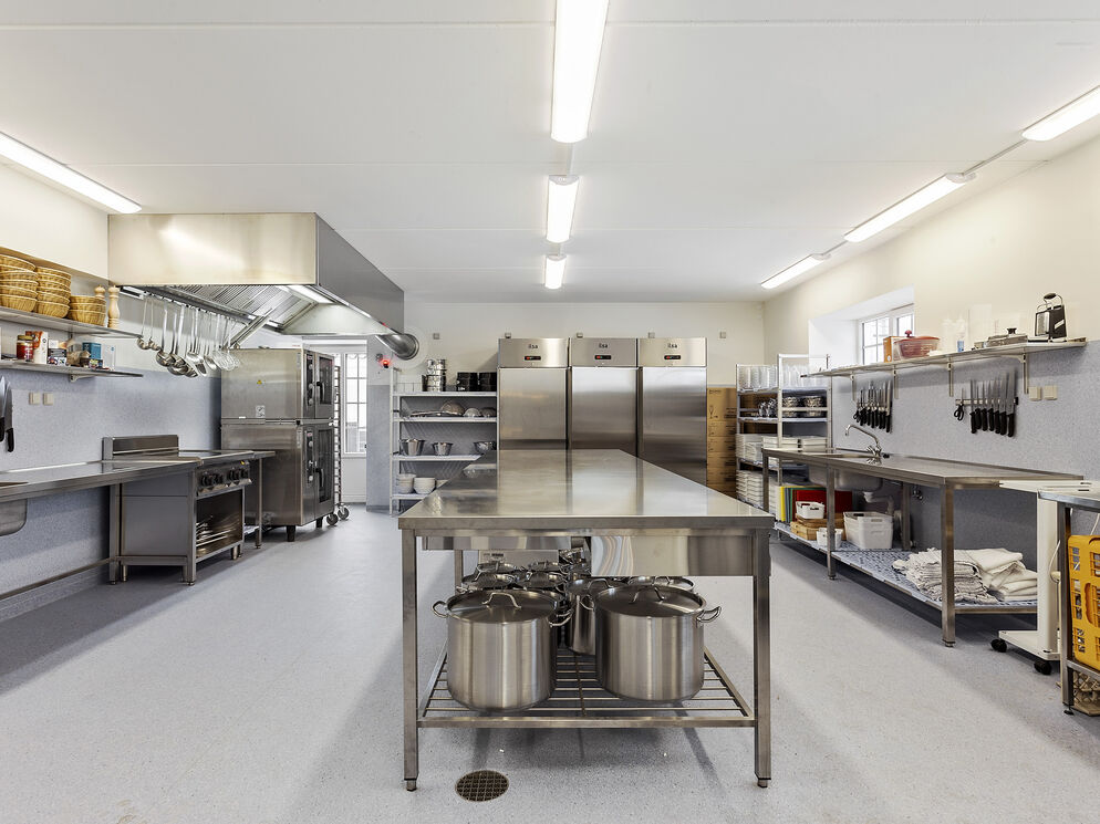 Schön gestalteter Festsaal, der sich für kleine und größere Festlichkeiten und Zusammenkünfte eignet. Im Vorraum befinden sich eine Garderobe und Toiletten. Direkt neben der Küche erwartet Sie eine neue Großküche mit zwei großen Kühlschränken, einem großen Gefrierschrank, einem Industrie-Herd, zwei Industrie-Backöfen, einer großen Kaffeemaschine und einem großen Hauben-Geschirrspüler.