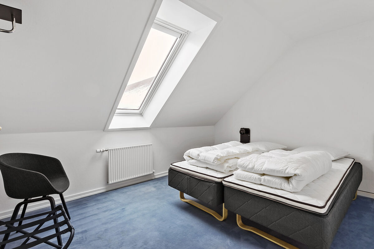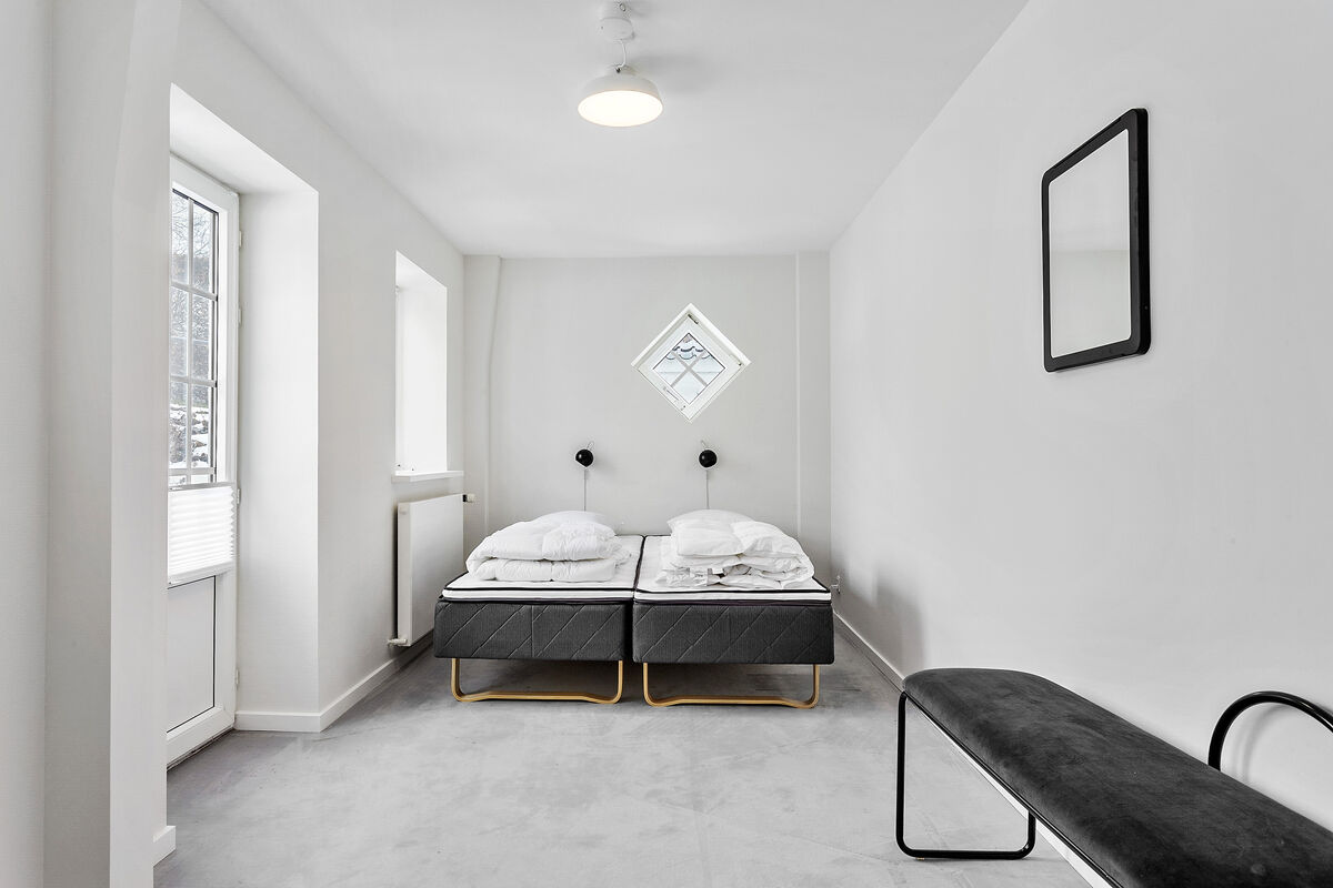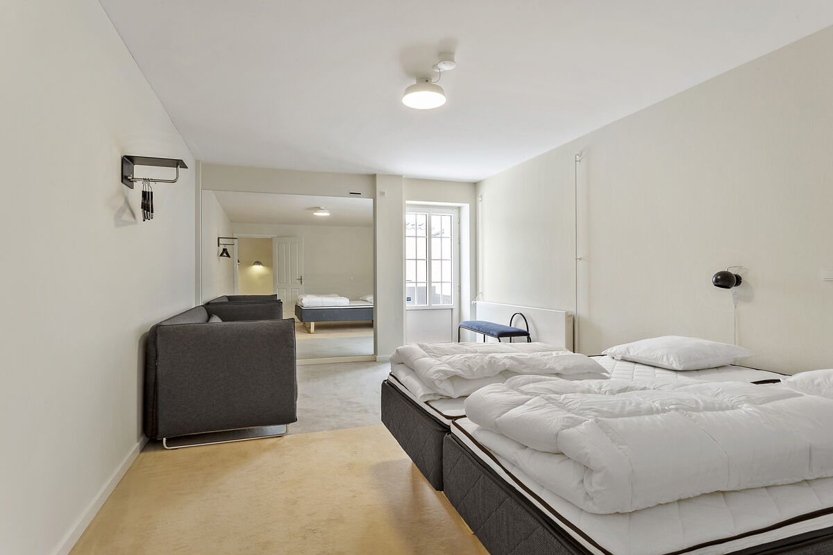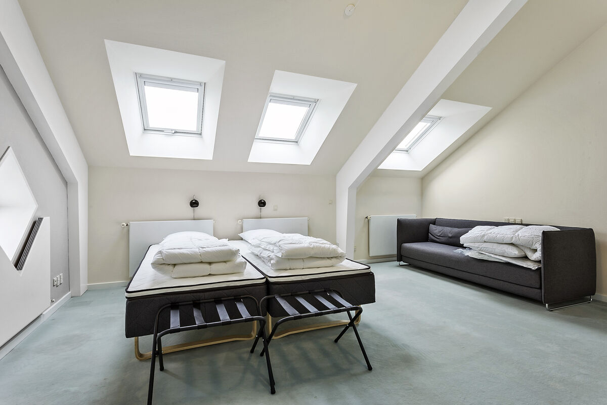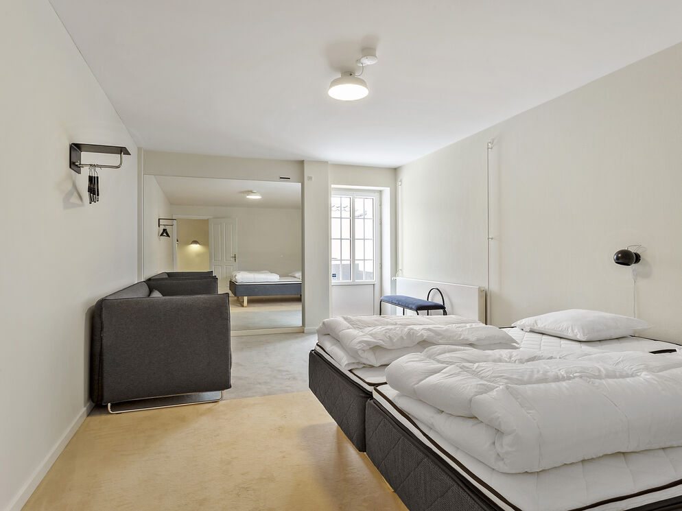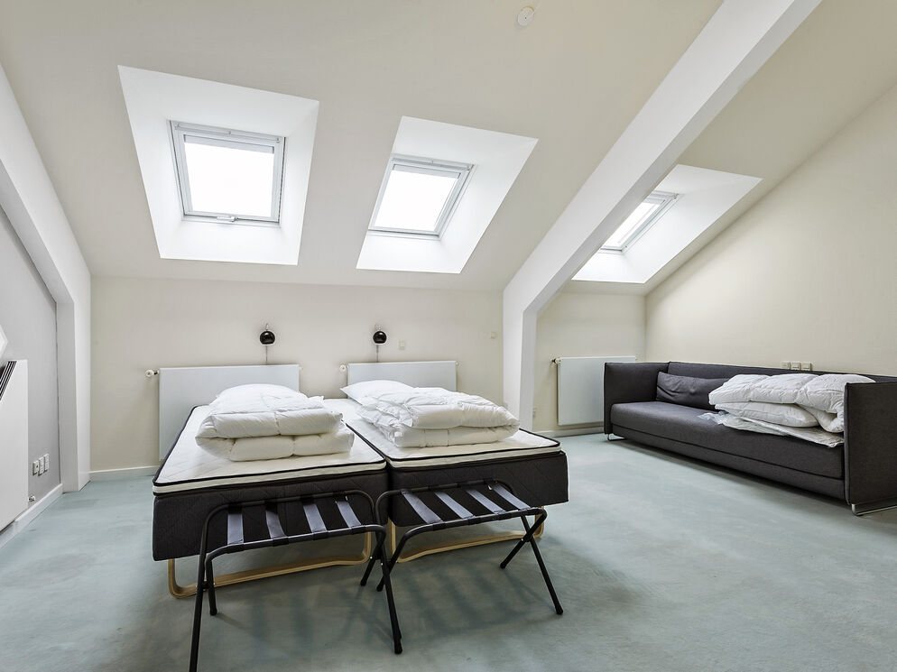 Das Gebäude beherbergt darüber hinaus zwei Badezimmer und sechs Schlafräume, von denen zwei mit je einem zusätzlichen doppelten Schlafsofa ausgestattet sind. Insgesamt bietet das Gebäude somit Platz für 16 übernachtende Gäste. Falls Sie weitere Schlafplätze benötigen, kann das auf dem Treppenabsatz befindliche Schlafsofa für zwei Personen ebenfalls genutzt werden.