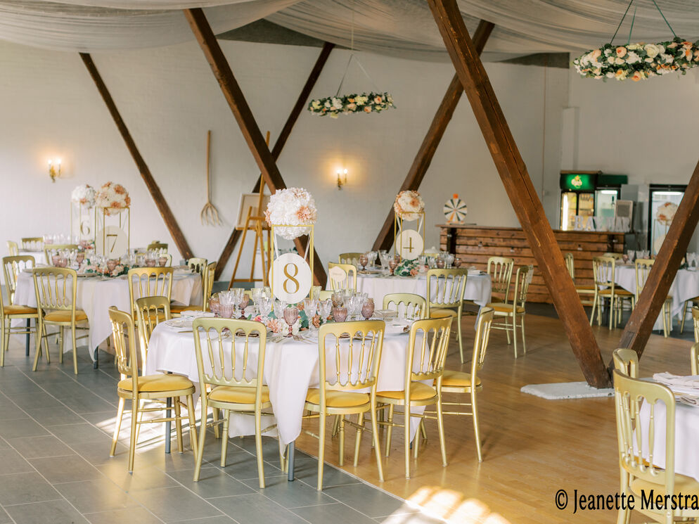 Wir haben Erlaubnis bekommen, von Kristina und Rasmuses Hochzeit, Ihre Billder zu veröffentlichen, die zeigen, wie man im Festsaal von Hvolgaard Hovedgaard aufdecken kann.