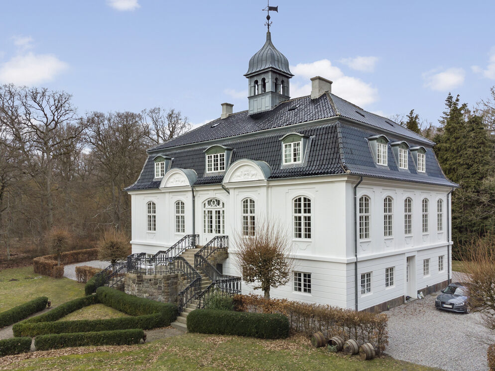 Das attraktive Weiße Palais mit seinem schwarzen Ziegeldach wurde im Jahr 1920 im kleinblättrigen Lindeskov erbaut - mitten im hügeligen Terrain Lollands. Nur 600 Meter hinter dem Anwesen erstreckt sich bereits die Ostsee. Dänemarks faszinierende Hauptstadt Kopenhagen liegt 175 Kilometer von Schloss Vindeholme entfernt.