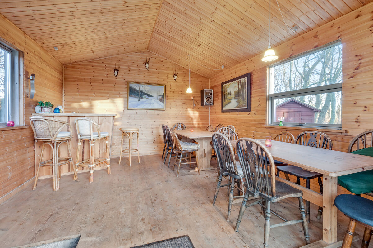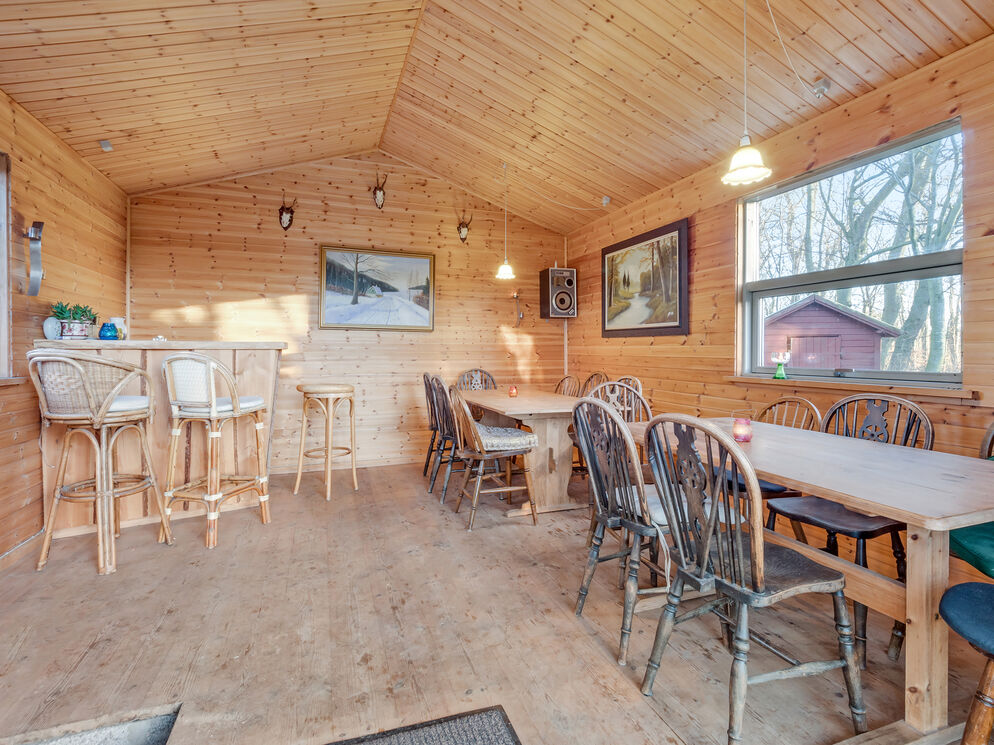 Der “Thorum Præstegård” bietet Platz für 30 Urlaubsgäste. Das Urlaubsdomizil liegt inmitten attraktiver Natur. Das 45.000 m² große Naturgrundstück begeistert mit zahlreichen Aktivitätsmöglichkeiten wie beispielsweise einem Beachvolleyballfeld, Fußballtoren und einer 40 Meter langen Schwebebahn. Im Inneren treffen Sie auf einen Wohnbereich und zwei Esszimmer, sowie auf 10 Schlafräume wovon zwei der Zimmer Durchgangszimmer sind, ein Badezimmer und zwei Gäste-WC. Die funktionale Küche empfängt Sie mit einem Geschirrspüler, einer Mikrowelle, einem Kühlschrank und einem Herd. Entspannte Abende in geselliger Runde verspricht die finnische Grillkota mit Platz für 30 Personen. Die Schwedische Badetonne wird mittels eines Holzofens beheizt - es gibt auch eine kalte Schwedische Badetonne.. Zum “Præstegården” gehört zudem ein 460 m² großer Aktivitätsraum - Dort ist ebenfalls ein Doppelbett. Dieses Urlaubsobjekt bietet Ihnen beste Aktivitätsmöglichkeiten und eignet sich hervorragend für eine große Familie oder für eine Gruppe, die sich gerne inmitten der Natur aufhält.