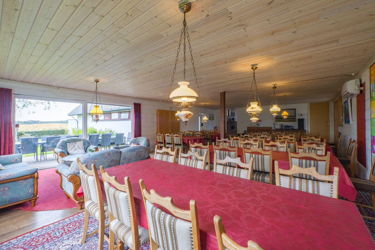 Stort rummeligt feriehus med udsigt til Limfjorden og i smukke og landlige omgivelser. En kort gåtur og man oplever er i en smuk natur med grønne omgivelser. Selve ferieboligen er indrettet til 41 personer og er funktionelt med god plads og med mulighed for forskellige aktiviteter såvel ude som inde. Selve køkkenet er funktionelt og praktisk indrettet med service og det nødvendige køkkenudstyr herunder køleskabe, opvaskemaskine og øvrigt udstyr. Udover opholdstue og spisestue er der aktivitetsrum med bl.a. bordfodbold. Ude tæt ved hovedhuset er indrettet med forskellige aktiviteter herunder sauna. En feriebolig der er funktionelt indrettet og tilgodeser de behov man har som en større gruppe. Hele området inviterer til gåture i en smuk natur og ferieboligen er indrettet med de muligheder for såvel børn som voksne En velholdt feriebolig som tilgodeser behov, om man ønsker en aktiv ferie eller blot ønsker mere afslappede forhold.
