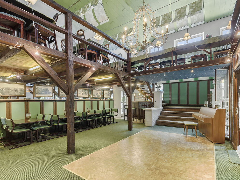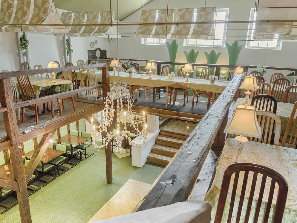 There is an intimate and cosy atmosphere in the dairy’s main hall, which seats 70 guests.
