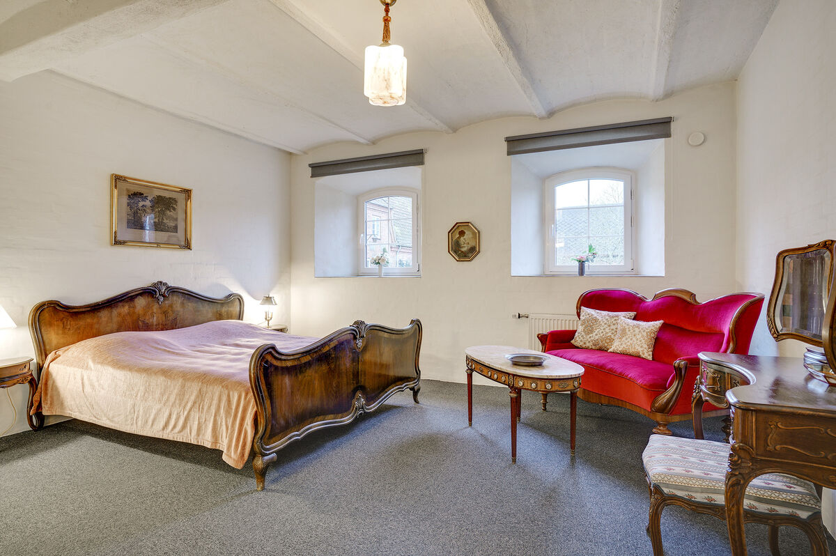 Hesthave has 10 bathrooms with a shower and underfloor heating and 2 separate toilets. There is a total of 12 bedrooms – 12 double beds and 6 bunkbeds. Additionally, there is an annex with 5 bedrooms with a total of 10 extra beds, which can be rented for a few nights, a party room and a sports hall.