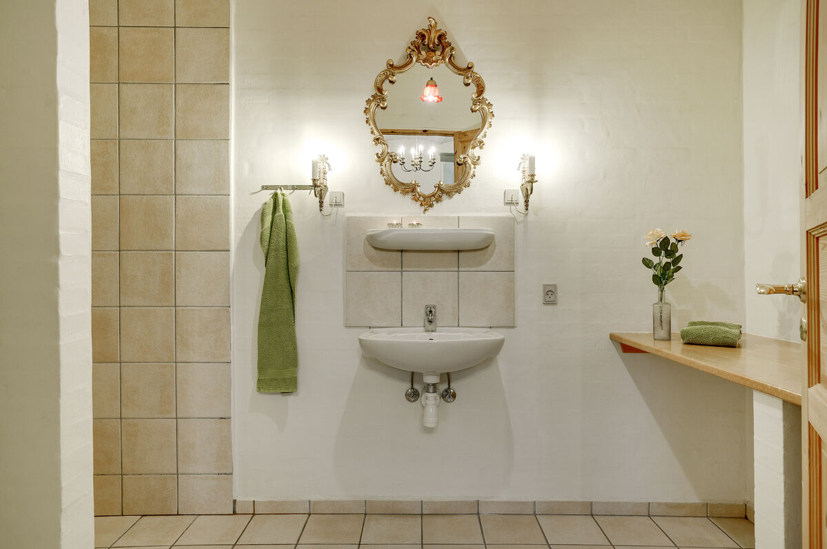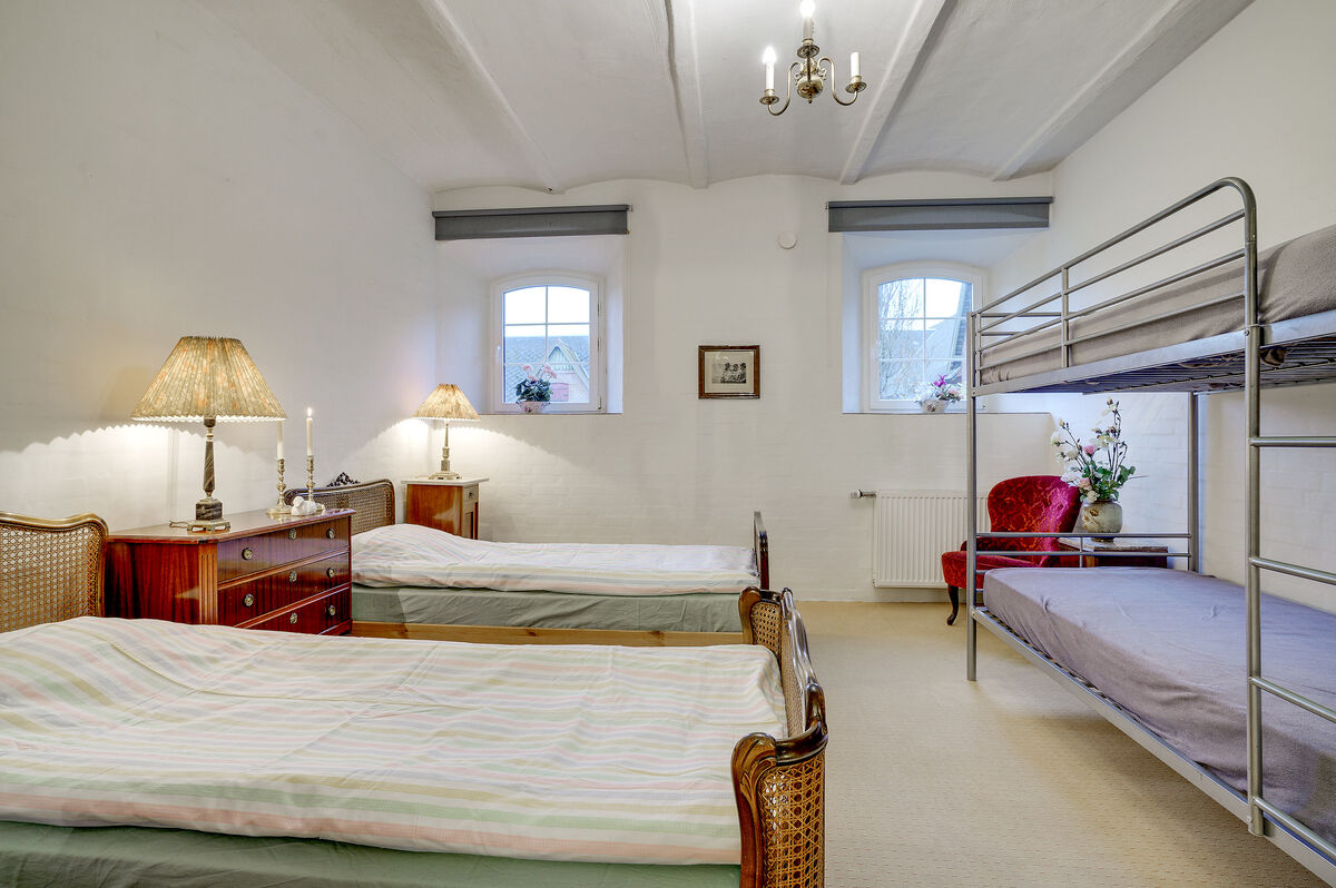 Hesthave has 10 bathrooms with a shower and underfloor heating and 2 separate toilets. There is a total of 12 bedrooms – 12 double beds and 6 bunkbeds. Additionally, there is an annex with 5 bedrooms with a total of 10 extra beds, which can be rented for a few nights, a party room and a sports hall.