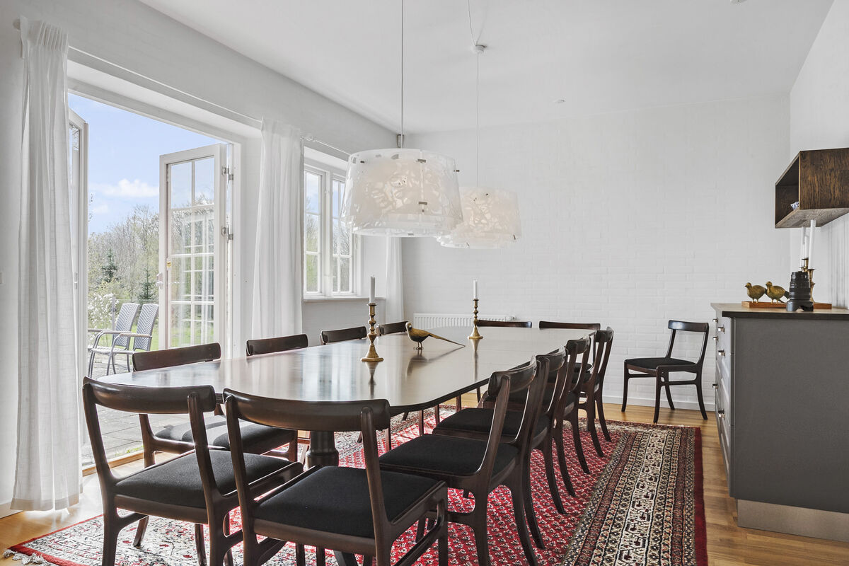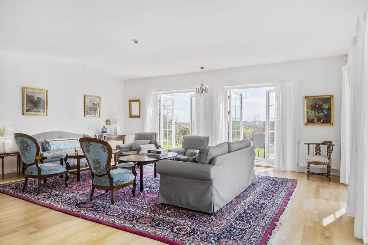 Louisehøj offers something truly special both inside and out: The modern and beautifully furnished 360 m2 home has room for everyone and features an exceptionally stunning view from its hilltop location east of Tirsbæk Estate, providing a splendid backdrop. In short: You will be looking forward to a modern trip to the hilltop!
