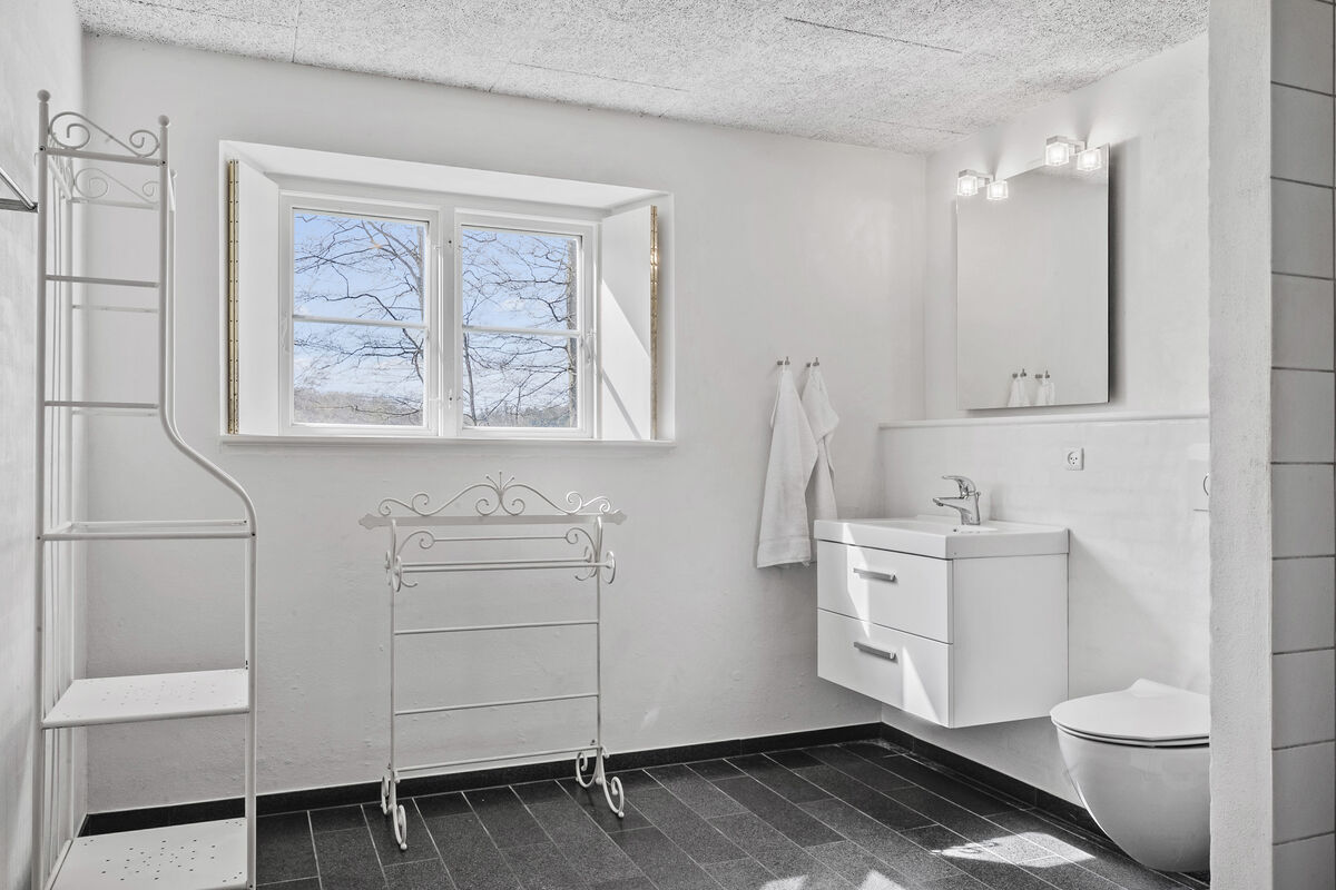 Louisehøj offers something truly special both inside and out: The modern and beautifully furnished 360 m2 home has room for everyone and features an exceptionally stunning view from its hilltop location east of Tirsbæk Estate, providing a splendid backdrop. In short: You will be looking forward to a modern trip to the hilltop!
