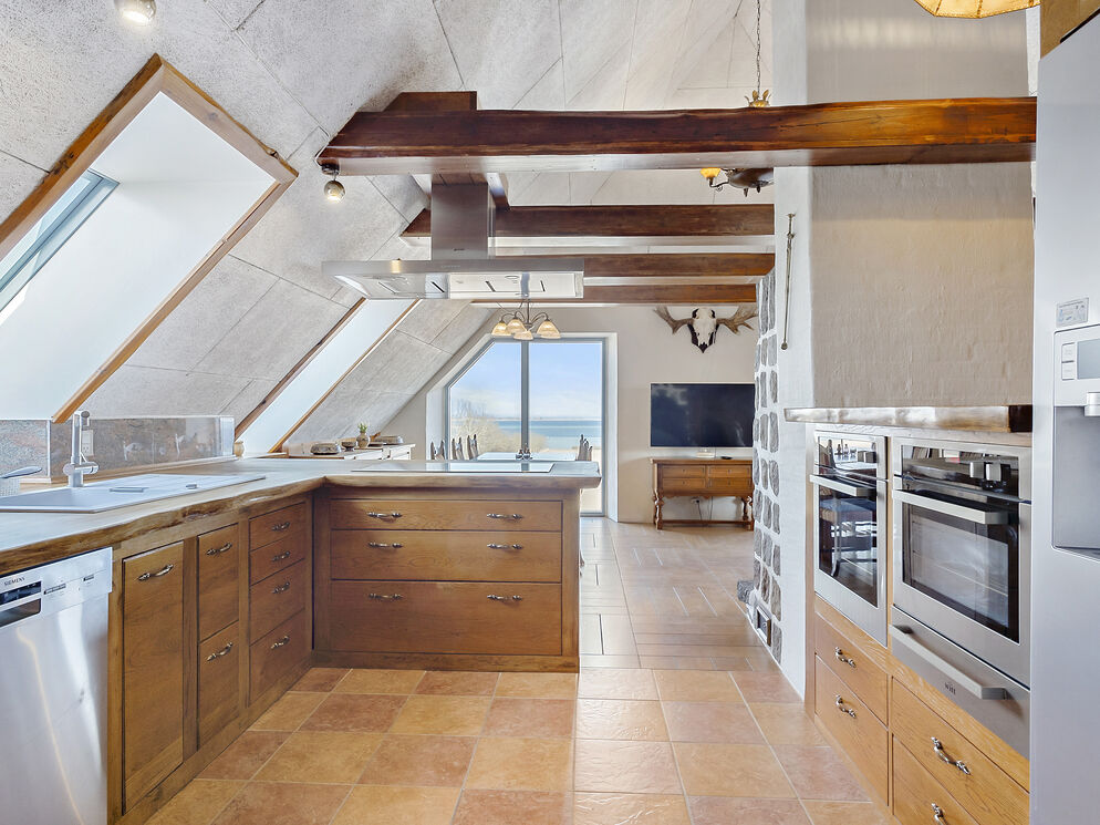 The house itself features no less than 6 bedrooms - all with individual stunning bathrooms. In 3 of the bedrooms, there are also lofts with 2 mattresses each, providing extra sleeping space. Both on the ground floor and on the first floor, there are two large kitchens in open relation to the dining area and living room. Additionally, there is a guest toilet on the ground floor. And from virtually every room, you will find breathtaking views of the sea.