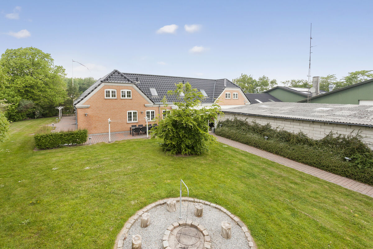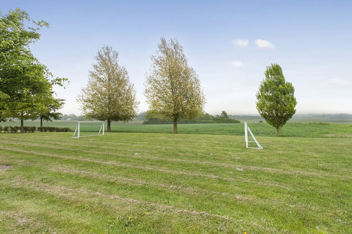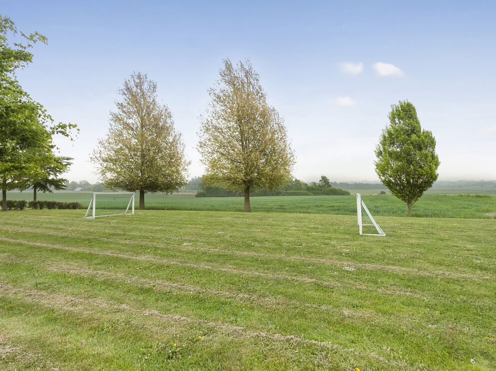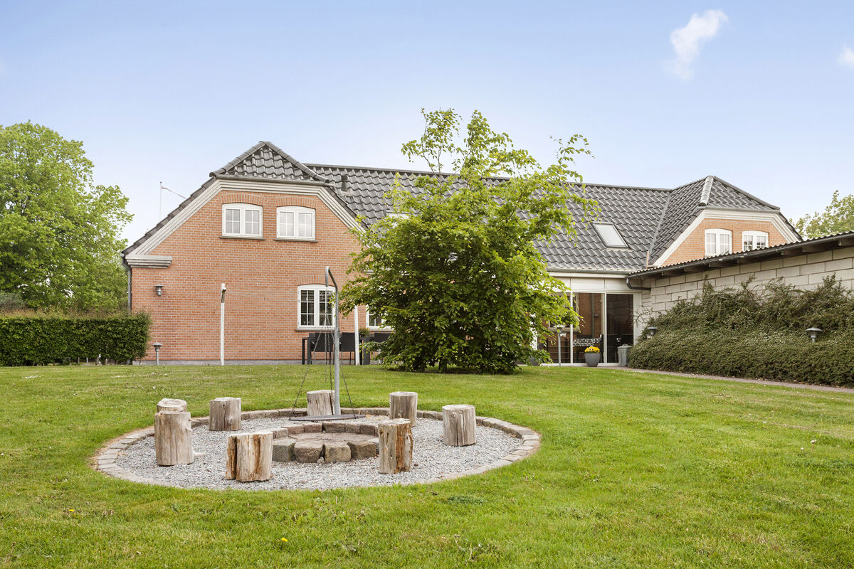 Beautiful holiday home of 475 m2 with a large swimming pool of 27 m2, featuring separate changing rooms for men and women, each with two showers, and a guest toilet with a changing table. Additionally, there is a sauna and a large activity room with both a pool table and table tennis. Furthermore, there are two large living rooms, two kitchen-dining areas, two bathrooms with a spa, and an additional two bathrooms on the first floor. The house also includes eight bedrooms and a 49 m2 conservatory. The property is located near the holiday home area of Vejlby Fed. The accommodation is designed for 17 people. The property includes a lovely large enclosed garden with multiple terraces, a playground, a sports field, and a bonfire area. Electric cars can be charged at the campsite's charging stations, which are for shared use throughout the area.