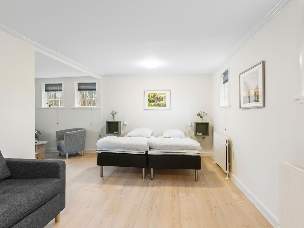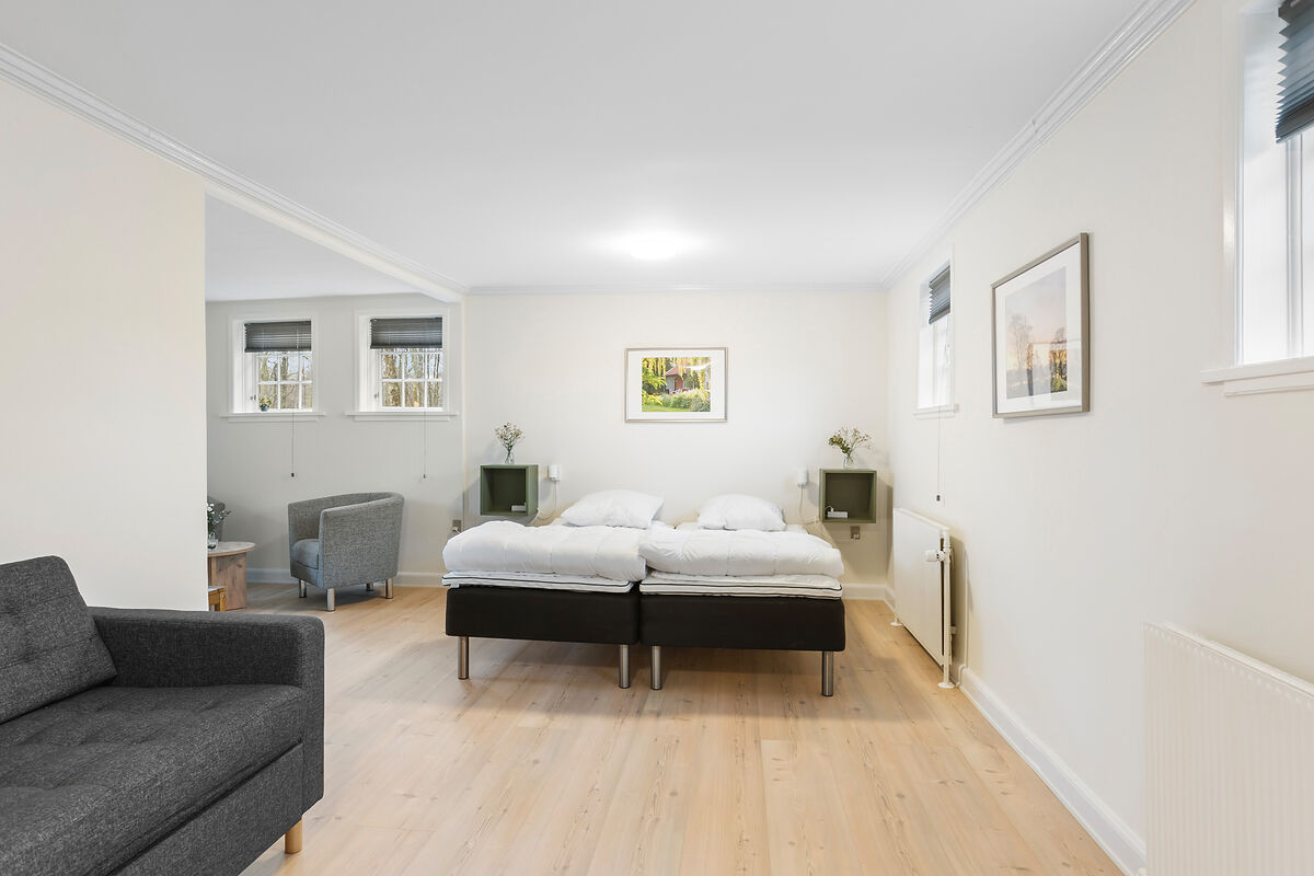 The old water mill Røde Mølle appears completely renovated with the possibility of accommodating up to 36 overnight guests. Røde Mølle is located adjacent to Hvidkilde Manor and Hvidkilde Lake. The view of the lake can be enjoyed from several of the living rooms.