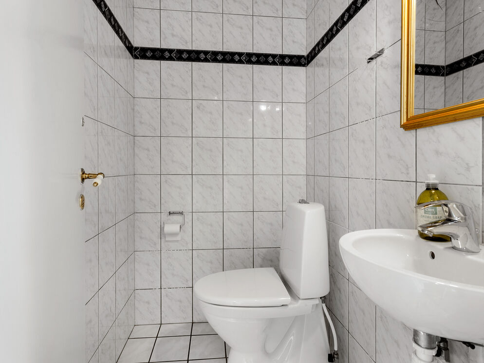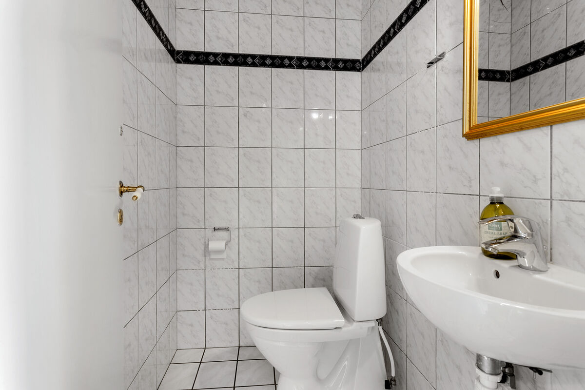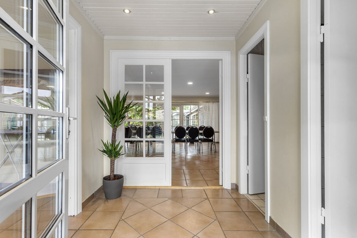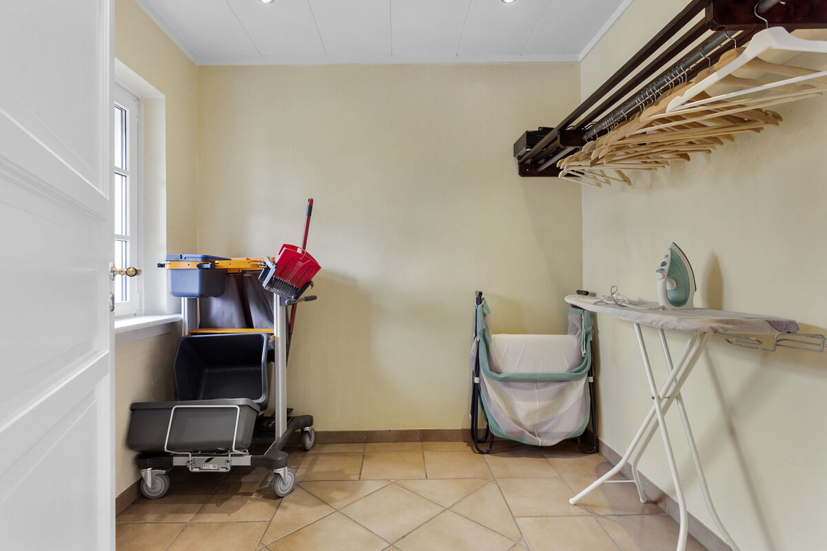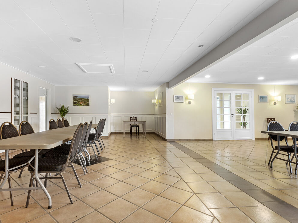 The holiday home accommodates 24 people and was partially renovated in 2013. The house includes a large, beautiful wellness area where you can space out in the 65m2 swimming pool, relax in the spa to loosen your tight muscles, and spend some time in the sauna located on the "island" in the middle of the pool. The wellness area also includes a bathroom. The living room is furnished with a large sofa arrangement and TV, as well as an area with both a pool table and table tennis. Furthermore, you will find a dining room with a table and chairs for everyone. The home has a large kitchen with plenty of space for culinary adventures. There are 12 bedrooms in the house, each with its own bathroom and toilet; 6 rooms have double beds, and 6 rooms are equipped with single beds. The property includes a large terrace with garden furniture and a grill.