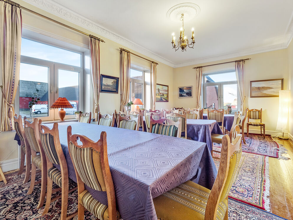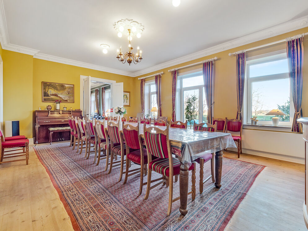 Thorum Rectory is a spacious retreat for up to 30 guests, nestled in beautiful natural surroundings with plenty of activities to enjoy. The property includes a vast 45,000 m² natural plot featuring a beach volleyball court, football goals, and a 40-meter zipline, perfect for outdoor fun.