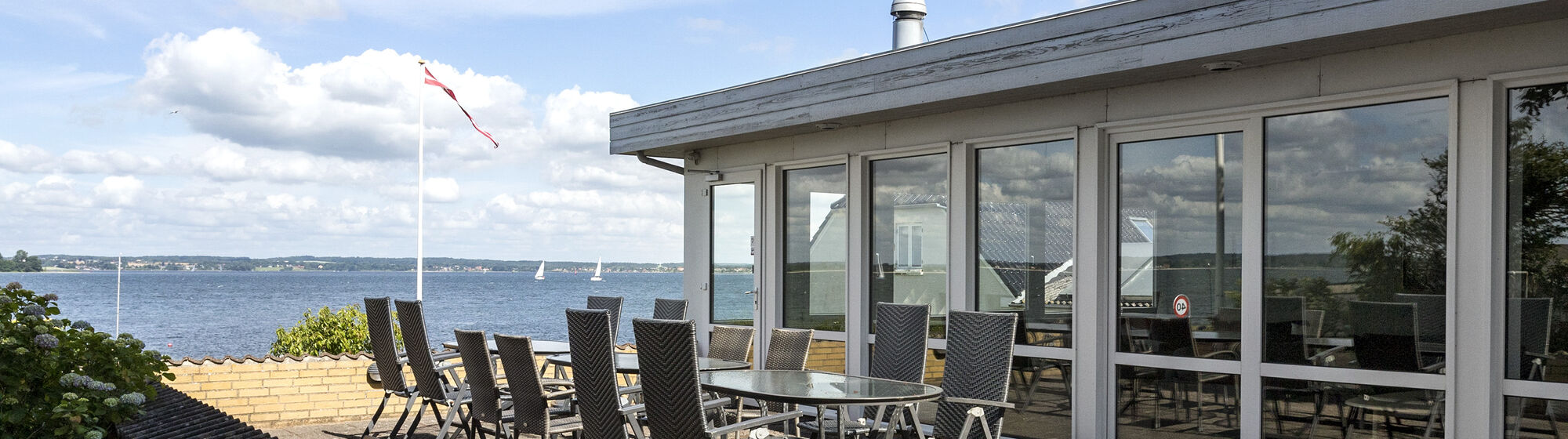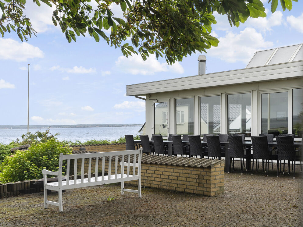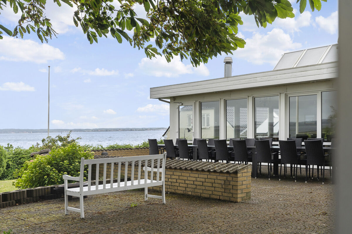 Der er masser af aktiviteter for hele familien i aktivitetsrummet eller ved træningsredskaberne. Fra opholdsstuen er der udgang til en 150 m2 stor udsigtsterrasse, hvorfra man ligeledes kan nyde udsigten over vandet og haven. Fra køkkenet er der desuden udgang til en overdækket terrasse. Man kan også opholde sig på den 5500 m2 store grund, som går helt ned til Flensborg Fjord og den børnevenlige strand.