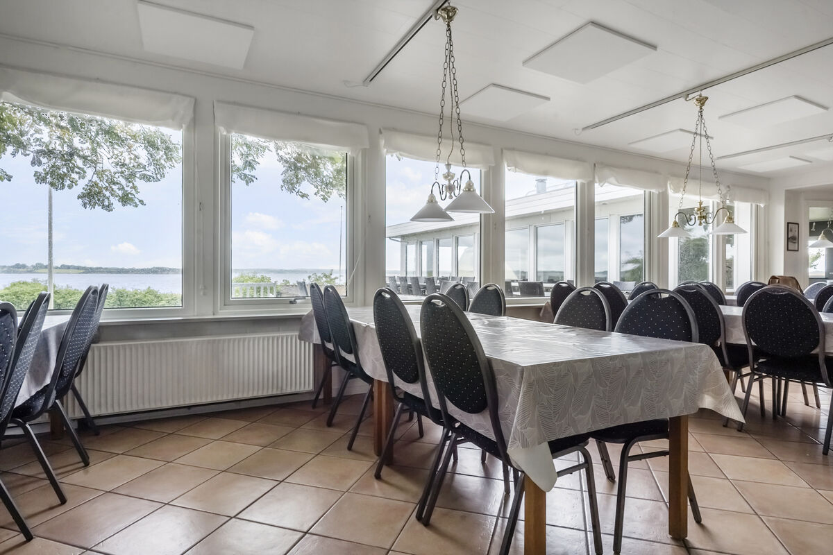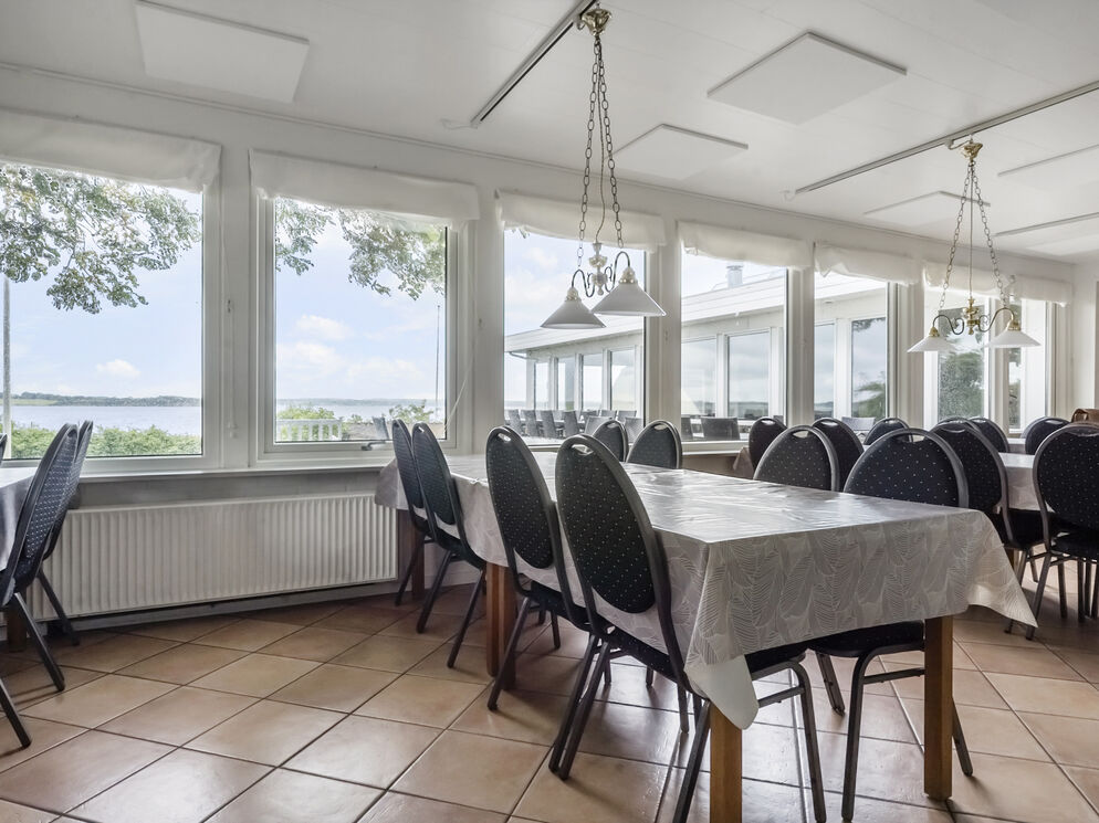 Huset er i 2 etager og er i stueetagen indrettet med en indbydende poolafdeling med en swimmingpool på 40m2 med modstrømsanlæg, et stort spabad, bruseniche og indgang til sauna. Derudover er der en stor, hyggelig opholdsstue med sofaarrangementer, TV, brændeovn og store panoramavinduer ud til vandet. Herfra er der indgang til den separate spisestue med plads til 32 personer og et vinduesparti mod vandet, således man kan nyde den storslåede udsigt under spisningen. Feriehuset Brunsnæs har et funktionelt industrikøkken med god plads til madlavningen til 32 personer samt et kølerum på 5 m2.